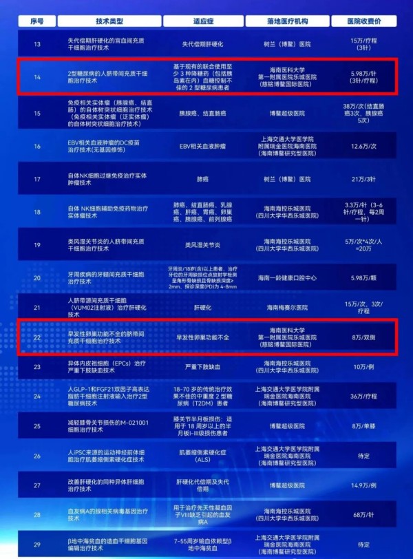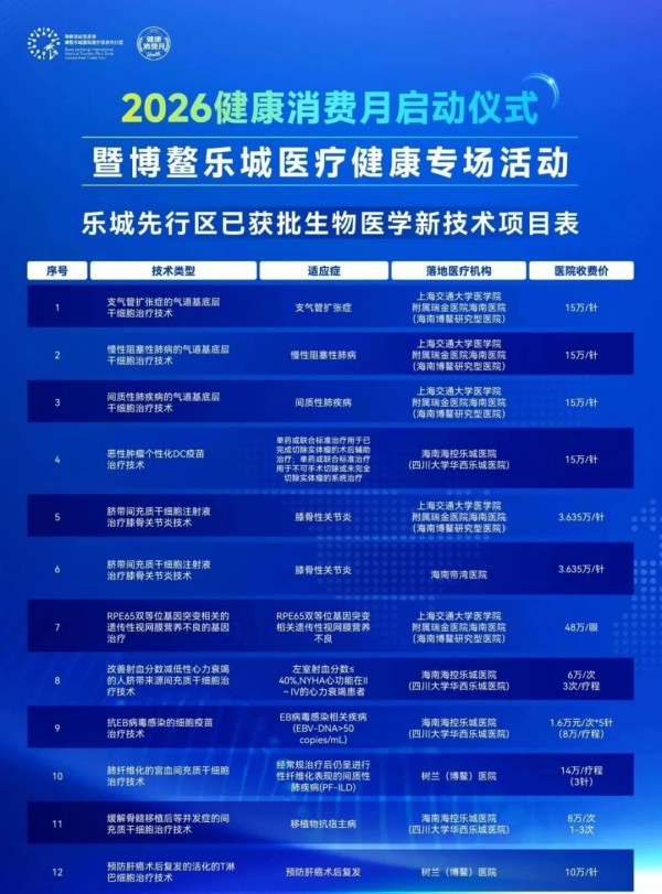 据了解,慈铭博鳌“早发性卵巢功能不全的脐带间充质干细胞治疗技术”已于2025年8月获批开展,旨在帮助卵巢功能减退的女性改善生育及健康状况。脐带间充质干细胞因其免疫调节和组织修复的独特优势,成为治疗早发性卵巢功能不全的有力手段,为面临生育困难的女性提供了全新的医学解决方案。慈铭博鳌“2型糖尿病的人脐带间充质干细胞治疗技术”已于2025年12月30日获批开展,精准针对2型糖尿病这一影响数亿人群的重大公共卫生问题,实现了干细胞治疗从实验室研究向规模化临床应用的跨越。